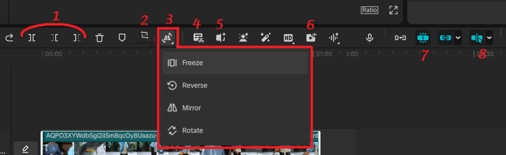 يحمل شريط ادوات مسار الفيديو عدة اختصارات مهمة للتسهيل العمل
