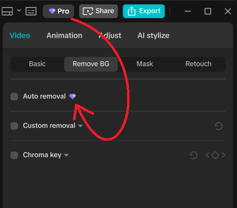 لهذا لا اريد ان تعتقد ان جميع مزايا CapCut هي متاحة او مجانية