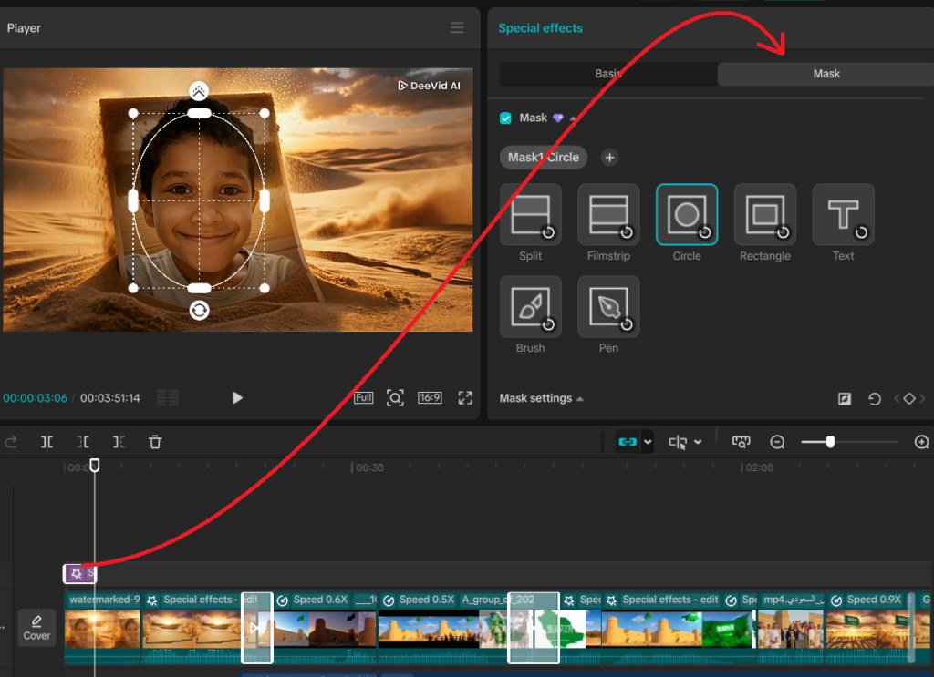 عملية استخدام القناع على فيديوهاتك مشابهة للطريقة السابقة